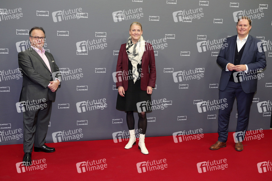 Albert Wiederspiel, Jana Schiedek und Carsten Brosda bei der Festivaleröffnung mit der Premiere des Kinofilms 'Enfant Terrible' auf dem 28. Filmfest Hamburg 2020 im Cinemaxx Dammtor. Hamburg, 24.09.2020