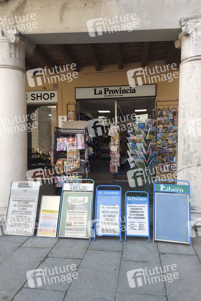 In Crema wurde der Film 'Call Me by Your Name' von Luca Guadagnino zum Großteil gedreht. Im Bild ein Zeitungskiosk aus dem Film . Crema, 31.07.2024
