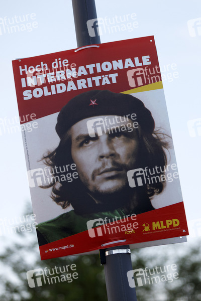 Wahlplakat der MLPD mit dem Konterfei von Che Guevara zur Europawahl auf einer Wiese in der Südstadt. Köln, 24.04.2019