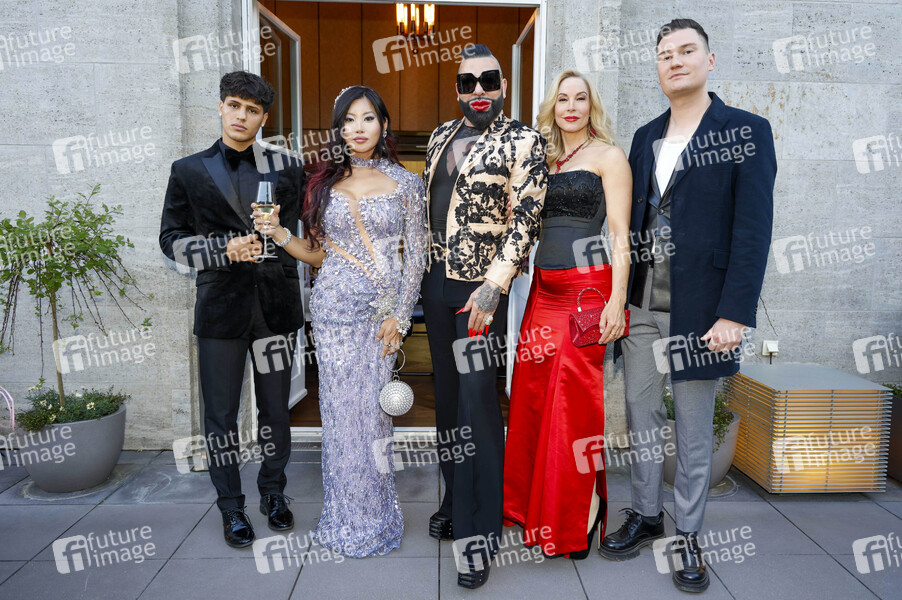 Hakim Hassani, Kioko Li, Harald Glööckler, Michelle Monballijn und Henning Baron von Berg beim exklusiven Dinner von Harald Glööckler und der Vorstellung seiner Muse Tatiana Makarova im Hotel SO/ Berlin Das Stue. Berlin, 09.05.2025