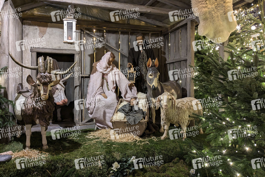 Weihnachtskrippe auf dem Weihnachtsmarkt WeihnachtsZauber Gendarmenmarkt 2024 auf dem Bebelplatz an der Staatsoper. Berlin, 27.11.2024