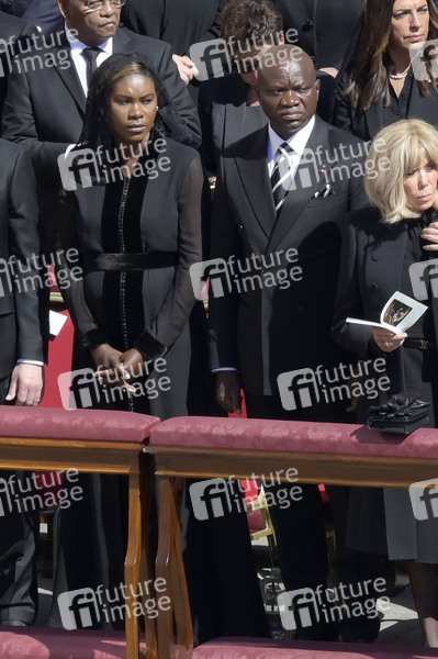 Brice Oligui Nguema mit Ehefrau Zita Oligui Nguema bei der Trauermesse für den verstorbenen Papst Franziskus auf dem Petersplatz. Vatikanstadt, 26.04.2025