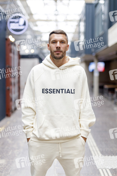Lukas Podolski bei der Übergabe der Spende von 250.000 Euro aus der REWE Jackpot Aktion an die Lukas Podolski Stiftung in der Strassenkicker Base. Mit dem Großteil des gesammelten Geldes wird der Bau eines modernen Straßenkicker-Courts in Köln Müngersdorf unterstützt. Der darüber hinaus gehende Spendenbetrag fließt als Fördermittel in weitere soziale Projekte der Lukas Podolski Stiftung, vor allem in den Aufbau und die Unterstützung sportbasierter Bildungsprojekte für Jugendliche und Schulen in der Soccer Halle 'Strassenkicker Base' in Köln-Mühlheim (Quelle: https://fuerdenfussball.rewe.de/). Köln, 01.07.2021