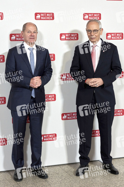 Olaf Scholz und Michael Vassiliadis beim 7. Ordentlichen Gewerkschaftskongress der IG Bergbau, Chemie, Energie im Hannover Congress Centrum. Hannover, 27.10.2021
