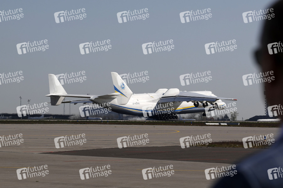 Ankunft einer Antonow 225 mit einer Lieferung von Schutzmaterial aus China auf dem Flughafen Leipzig/Halle. Mehr als zehn Millionen Schutzmasken kommen als Bundeswehr-Transport mit einer Antonow 225, dem größten und schwersten Frachtflieger der Welt, aus dem chinesischen Tianjin. Das Bundesministerium der Gesundheit hatte sich Anfang April mit der Bitte um Unterstützung beim Transport von Schutzausstattungen an das Bundesministerium der Verteidigung gewandt. Leipzig, 27.04.2020