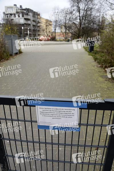 Schließung des Spielplatzes Planschbecken am Nordbahnhof wegen der Coron-Krise. Berlin, 20.03.2020