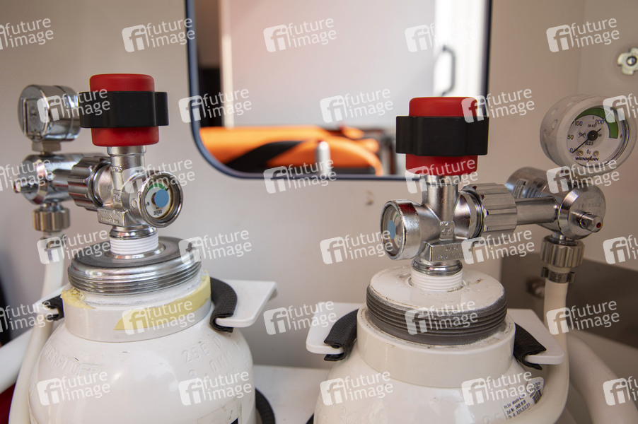 Sauerstoffversorgung im Rettungswagen (RTW) anlässlich des Tages der 'Ersten Hilfe' im Führungs- und Schulungszentrum der Feuerwehr Köln. Köln, 11.09.2020