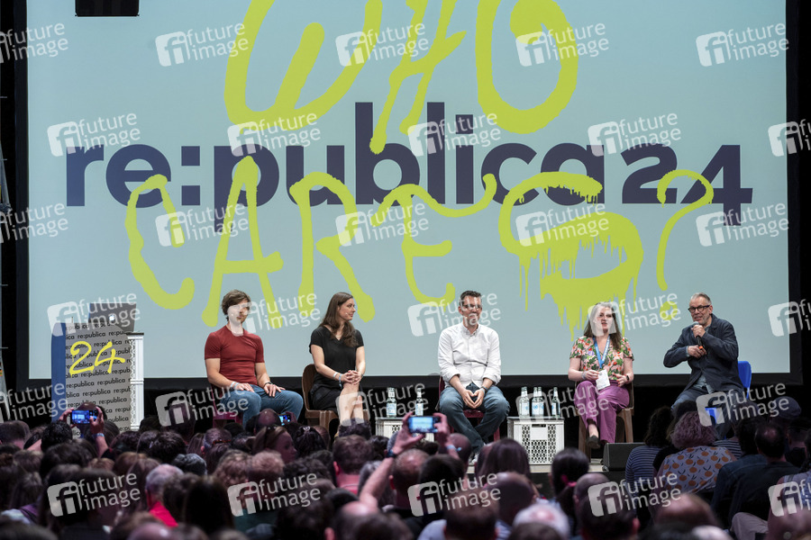 Patricia Cammarata, Simon Hurtz, Dirk von Gehlen, Katharina Nocun und Johnny Häusler auf der re:publica 24, dem Festival für die digitale Gesellschaft, im Station. Berlin, 27.05.2024