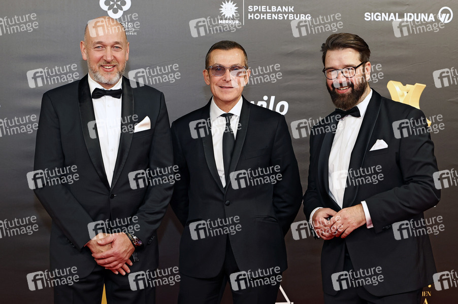 Christian Vosseler, Manuel de la Roche und Marc Peine bei der 20. Kinderlachen-Gala 2024 in der Messe Dortmund. Dortmund, 30.11.2024