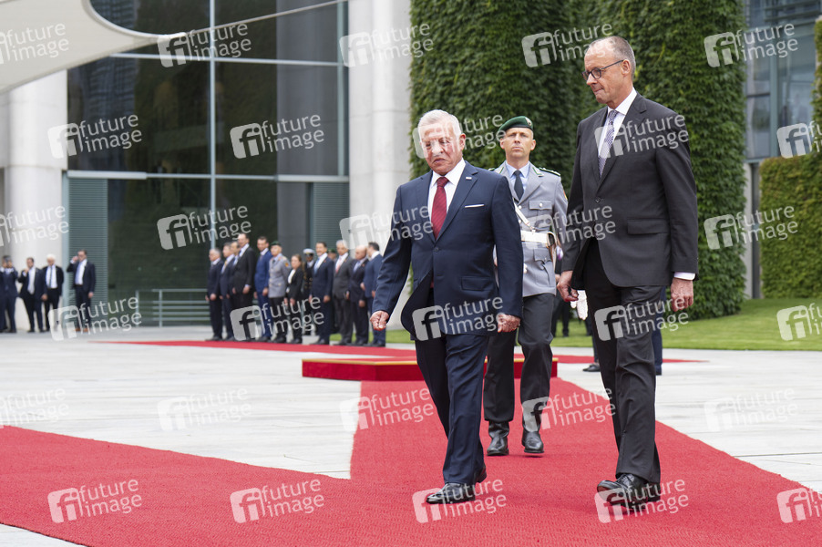 Abdullah II. bin al-Hussein und Friedrich Merz beim Empfang des Königs von Jordanien mit militärischen Ehren zu einem gemeinsamen Gespräch mit anschließendem Pressestatement im Bundeskanzleramt. Berlin, 29.07.2025
