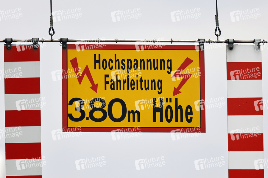 Hochspannung, Oberleitung, Fahrleitung, Strom, Lichtbogen, Warnschild, Warnhinweis, Idiotenbrücke, Fahrzeughöhe, maximale Höhe, maximale Durchfahrtshöhe, steckengebliebener LKW, Abmessungen von Kraftfahrzeugen, Unfallgefahr, Untersagung der Weiterfahrt, Kollision, Höhe von LKWs, Fahrzeughöhe, Oberleitungsschaden, Sicherheitszuschlag, Engpass, Technischer Dienst, Eisenbahnbrücke, Bogenbrücke, Achsenbruch, Verkehrszeichen 265, Durchfahrtsverbot für höhere Fahrzeuge, Unterführung, Durchfahrt, Brücke, Versicherungspflicht, Fahrlässigkeit, Unfall, Autoversicherung, LKW stecken geblieben, Warnschild, Symbolbild, Symbolfoto