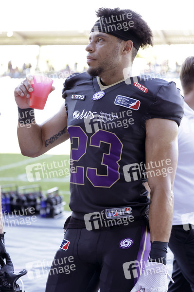 Niko Lester (23) beim American Football-Spiel Frankfurt Galaxy gegen Madrid Bravos in der PSD Bank Arena Frankfurt. Frankfurt am Main, 10.08.2024
