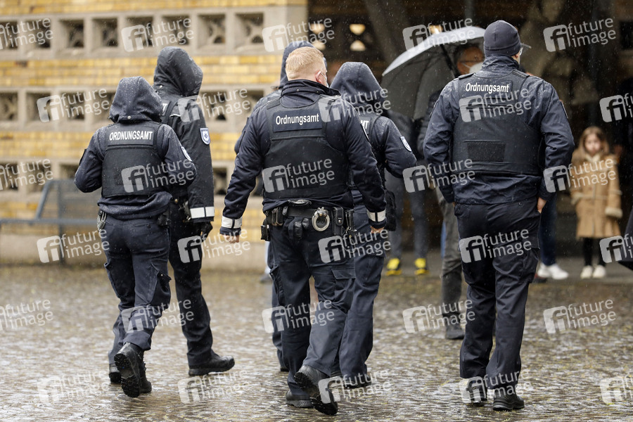 Ordnungsamt-Mitarbeiter bei der Trauerfeier und Beerdigung von Willi Herren auf dem Melaten Friedhof. Köln, 05.05.2021