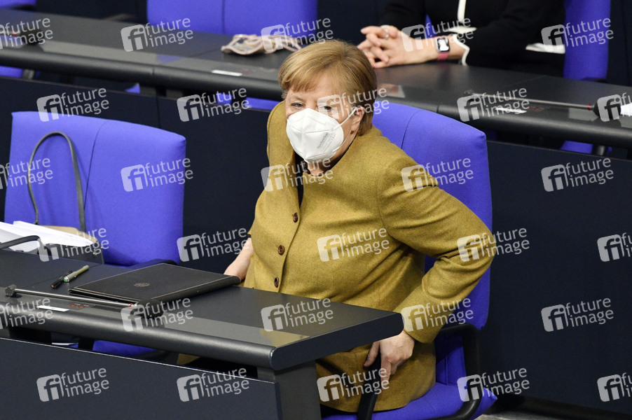 Angela Merkel in der 209. Sitzung des Deutschen Bundestages im Reichstagsgebäude. Berlin, 11.02.2021