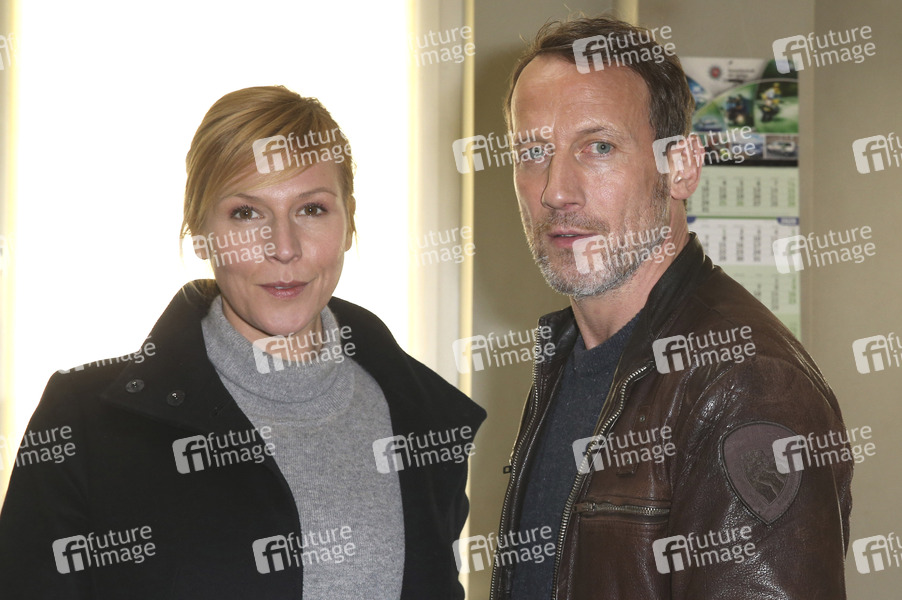 Kriminaloberkommissarin Julia Grosz und Kriminalhauptkommissar Thorsten Falke in 'Tatort', Prominenz, TV, Fernsehen, Krimi, Filmset, Fotocall, Photocall, Settermin, Dreharbeiten, TV-Film, Krimireihe, Serie, ARD, Das Erste, NDR, Schauspielerin, Schauspieler