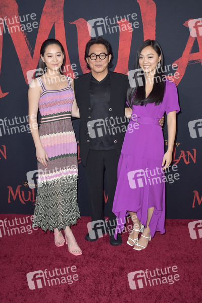 Jet Li mit Jada Li und Jane Li bei der Weltpremiere des Kinofilms 'Mulan' im Dolby Theatre. Los Angeles, 09.03.2020