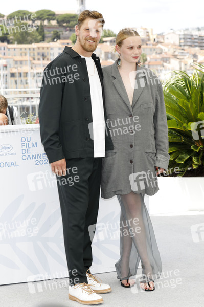 Gijs Naber und Luna Wedler beim Photocall zum Kinofilm 'A feleségem története / Die Geschichte meiner Frau / The Story of My Wife' auf dem Festival de Cannes 2021 / 74. Internationale Filmfestspiele von Cannes am Palais des Festivals. Cannes, 15.07.2021