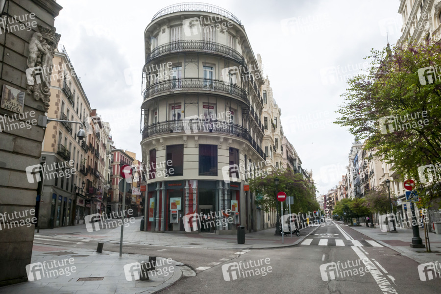 Leere Straßen im Stadtzentrum - Tag 35 seit Verhängung des Ausnahmezustands durch die spanische Regierung wegen der Coronakrise. Madrid, 18.04.2020