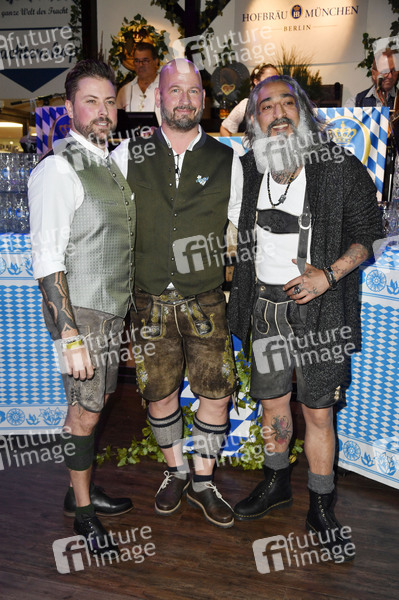 Felix von Jascheroff, Björn Schwarz und Senay Gueler beim Wiesn-Anstich zum Oktoberfest 2022 im Hofbräu Berlin. Berlin, 17.09.2022