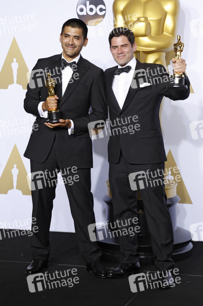 Gabriel Osorio Vargas und Pato Escala (Bester animierter Kurzfilm 'Bear Story') im Presseraum der Oscar Verleihung 2016 / 88th Academy Awards im Loews Hollywood Hotel. Los Angeles, 28.02.2016
