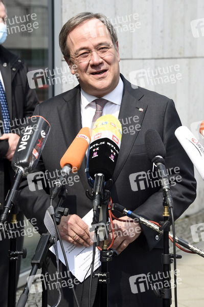 Armin Laschet bei einem Pressestatement zur Kanzlerkandidatur von Annalena Baerbock vor dem Konrad-Adenauer-Haus. Berlin, 19.04.2021