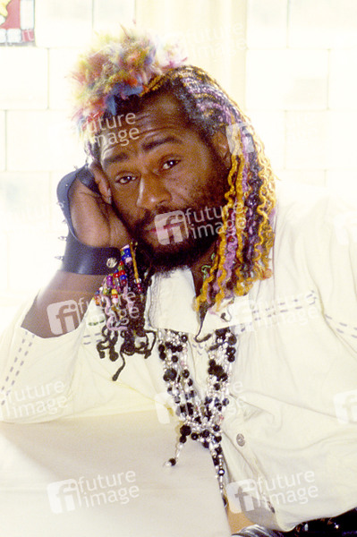 George Clinton von Dolby's Cube bei einem Pressetermin im Belfry Club. London, 04.07.1985