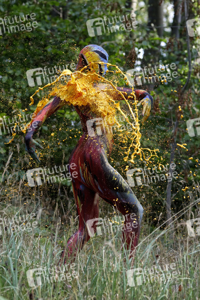 Bodyart: Wald Splash Performance mit Model Randy auf einer Waldlichtung. Holtensen, 05.09.2022 - BodyArt-Künstler: Jörg Düsterwald