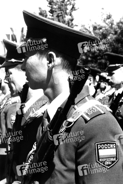 Russische Soldaten anlässlich der Abschiedsparade zur Verabschiedung der russischen Streitkräfte aus Deutschland. Berlin, 25.06.1994