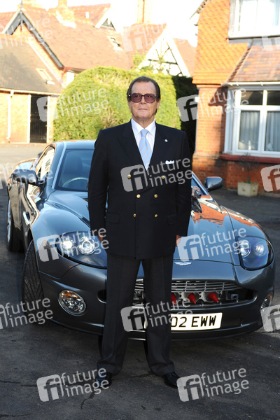 Pressetermin mit Sir Roger Moore in Bletchley Park, Bedfordshire anlässlich der Veröffentlichung von sechs James Bond-Filmen auf Blu-Ray