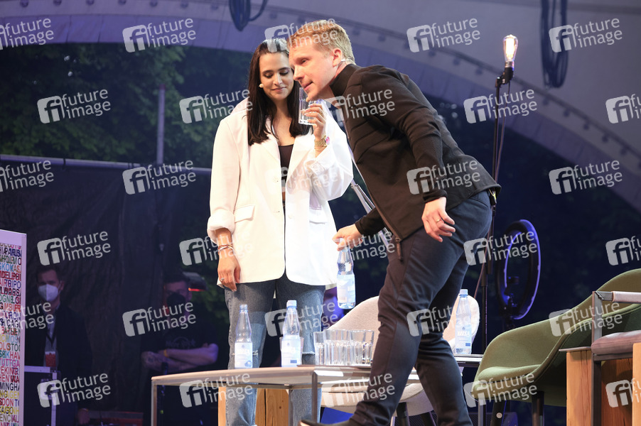 Amira Pocher und Oliver Pocher mit dem Programm 'Die Pochers hier' beim Auftakt der Konzertreihe 'Back on Stage' auf der Gilde Parkbühne. Hannover, 03.06.2021
