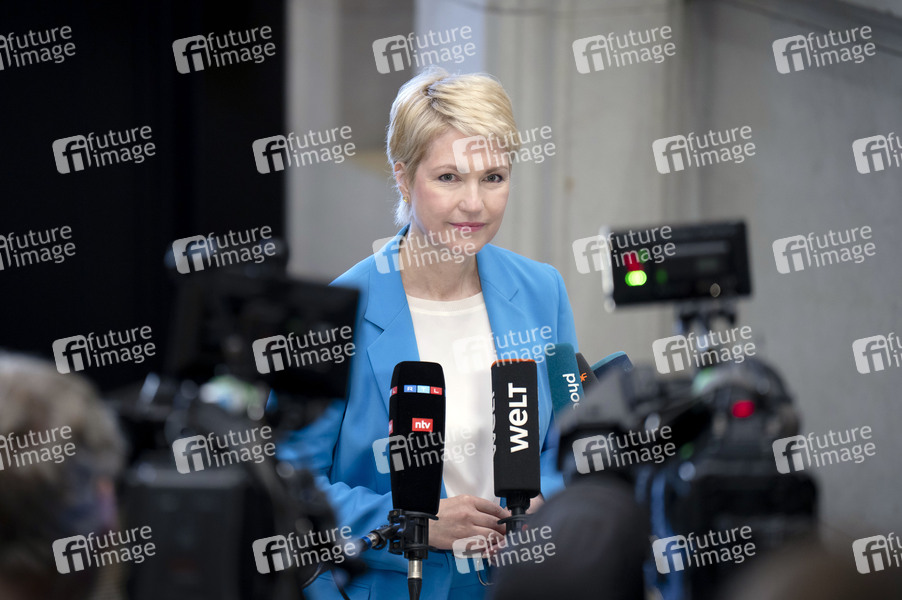 Manuela Schwesig beim Pressestatement am Rande der 1055. Sitzung des Bundesrates im Plenarsaal des Preußischen Herrenhauses. Berlin, 13.06.2025