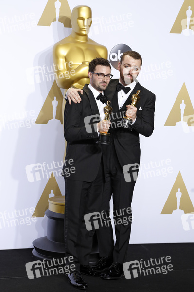 Jimmy Napes und Sam Smith (Bester Filmsong 'Writing’s on the Wall' aus 'James Bond 007: Spectre') im Presseraum der Oscar Verleihung 2016 / 88th Academy Awards im Loews Hollywood Hotel. Los Angeles, 28.02.2016