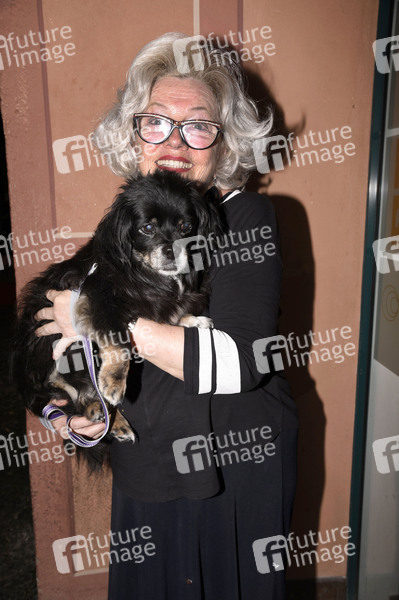 Veronika von Quast mit Hund bei der Veranstaltung 'Veronika von Quast singt und spricht Bayerische G'schichten' im Rahmen der Aktion 'Theater für alle' in der Passage neben dem Hofspielhaus. München, 28.07.2020