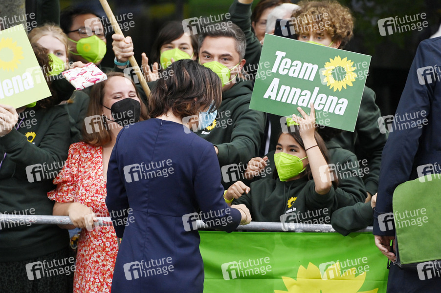 Politik, Wahl, Wahlkampf, Partei, Wahlkampfveranstaltung, Parteienwerbung, Kampagne, Wahlen, Bundestagswahlkampf, Bundestagswahl, Bundestagswahlen, TV-Triell, TV-Duell, Talk, Gespräch, Talkrunde, Gesprächsrunde, Diskussion, TV, Fernsehen, Politikerin, Kandidatin, Kanzlerkandidatin, MdB, Mitglied des Bundestages, Bundesvorsitzende Bündnis 90/Die Grünen