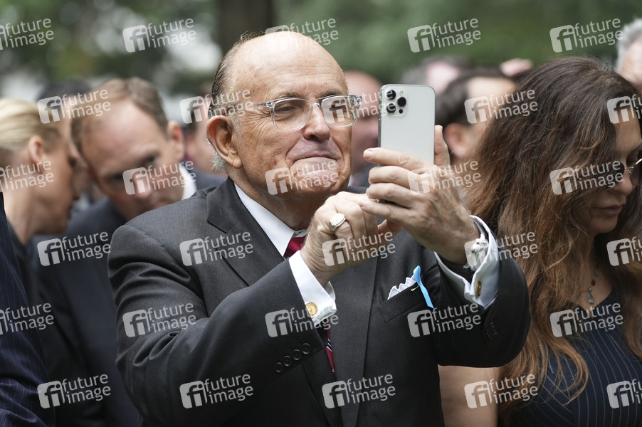 Rudy Giuliani bei der Gedenkfeier für die Opfer der Terroranschläge vor 21 Jahren am 9/11 Memorial. Mit Schweigeminuten und der Verlesung der Namen der fast 3000 Todesopfer haben die USA am Sonntag an die Terroranschläge vom 11. September 2001 erinnert. Am früheren Standort des World Trade Centers in New York verlasen Angehörige wie jedes Jahr am 11. September die Namen aller Anschlagsopfer. New York, 11.09.2022