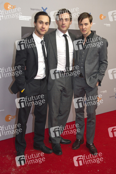 Ludwig Trepte, Volker Bruch und Tom Schilling bei der Premiere vom ZDF-Dreiteiler 'Unsere Mütter, unsere Väter' in der Astor Film Lounge. Berlin, 12.03.2013