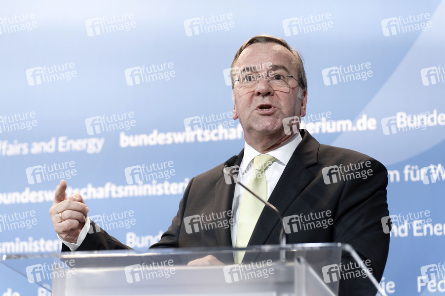 Boris Pistorius beim Pressestatement zum Industriedialog Sicherheits- und Verteidigungsindustrie im Bundeswirtschaftsministerium. Berlin, 19.03.2026