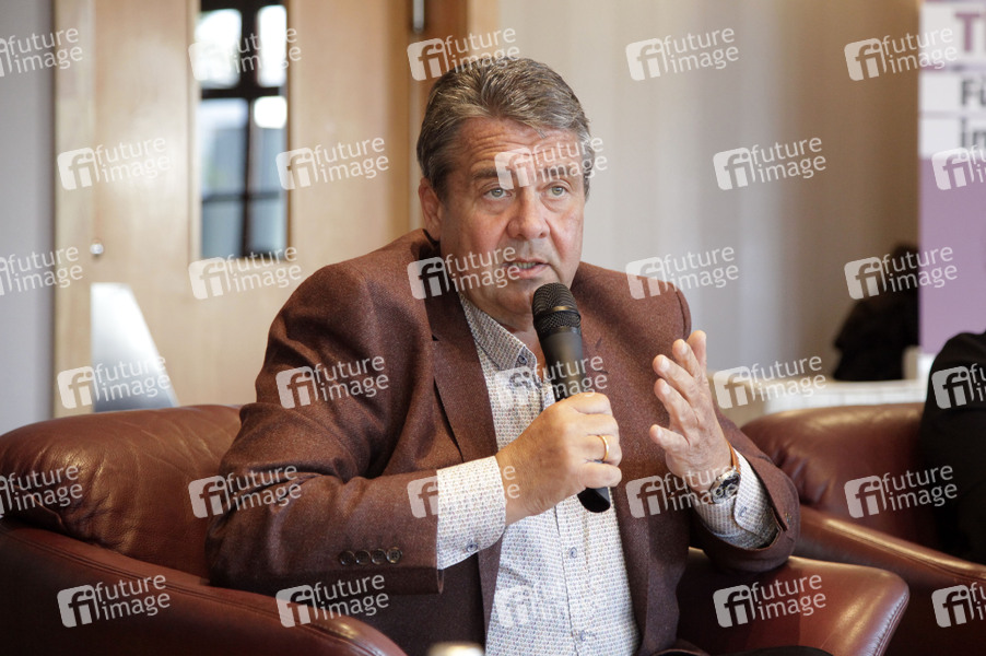 Politiker, 2009-2017 Bundesvorsitzender der SPD, 2013-2018 Vizekanzler der Bundesrepublik Deutschland, 2013-2017 Bundesminister für Wirtschaft und Energie, 2017-2018 Bundesminister des Auswärtigen, 1999-2003 Ministerpräsident von Niedersachsen, Politik, Wahl, Wahlkampf, Partei, Wahlkampfveranstaltung, Parteienwerbung, Kampagne, Wahlen, Wahlkampagne, Wahlkampftour, Kommunalwahlen, Wahlen Europäisches Parlament, Gespräch, Talk