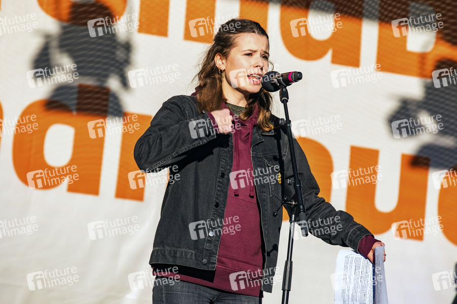Großdemo, Aktion, Banner, Demo, Demonstrant, Demonstranten, Demonstrierende, Demonstration, Demonstrationszug, demonstrieren, Politik, Protestaktion, Demo, Protestdemo, Protestdemonstration, gegen Rechts, Rechtsextremismus, Kundgebung, gegen AfD, #ZusammenGegenRechts, #WirSindDieBrandmauer, Klimaschutz-Aktivistin, Publizistin