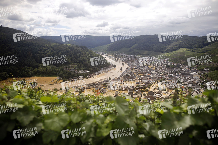 In der Eifel haben heftige Regenfälle und Dauerregen für Überschwemmungen und Überflutungen gesorgt. Im Ahrtal trat der Fluss vielerorts über die Ufer und überschwemmte nicht nur Keller sondern ganze Ortschaften. Im Bild der Ort Dernau (Landkreis Ahrweiler), der beinahe komplett von den Wassermassen geflutet wurde. Viele Menschen verloren alles. Dernau, 15.07.2021