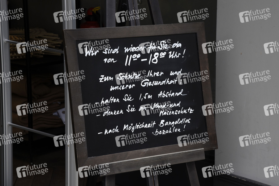 Verhaltenshinweise - Ladenöffnungen nach Lockerung der Corona-Beschränkungen. München, 27.04.2020