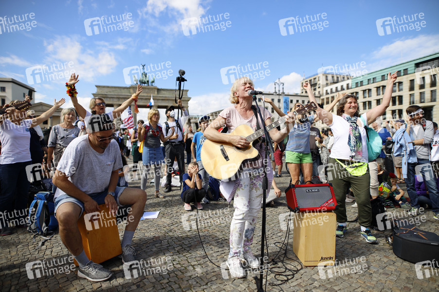 Demonstranten verschiedener Gruppierungen wie etwa der Initiative Querdenken 711 protestierten mit einer Großdemonstration in Berlin gegen die bestehenden Maßnahmen zur Eindämmung der Corona-Pandemie. Wegen Nichteinhaltung der polizeilichen Auflagen wurde die Demonstration durch die Polizei beendet. Es gab Rangeleien und Festnahmen. Berlin, 29.08.2020