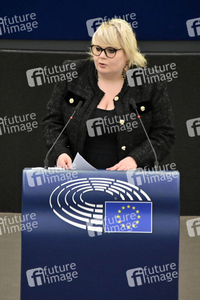 Aurélia Beigneux, Intergovernmental Panel on Climate Change, IPPC, Europäisches Parlament, Plenum, Plenartagung, Plenardebatte, Plenarsitzung, Debatte, Rede, Politik, Strasbourg, Strassburg, Europaparlament, Europa-Politik, EU-Abgeordnete, EU-Parlament, EP, Parlament der Europäischen Union, European Parliament, European Union, Parlamentum Europaeum, MdEP, Mitglied des Europäischen Parlaments, Politikerin, Frankreich, Rassemblement National, RN, Fraktion Identität und Demokratie, ID