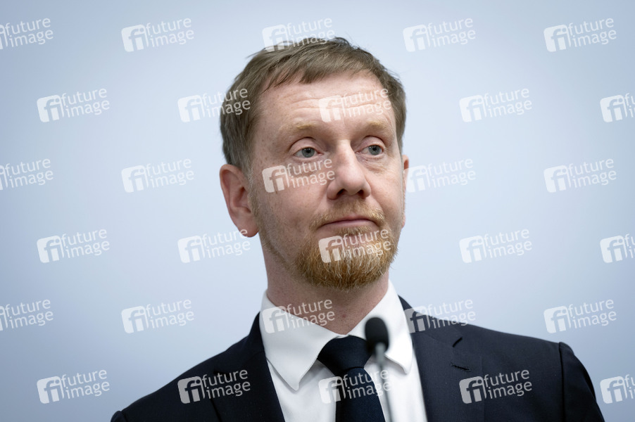 Michael Kretschmer beim Pressestatement zum 2. Mittelständischen Stahlgipfel in der Vertretung des Freistaates Sachsen beim Bund. Berlin, 21.11.2025