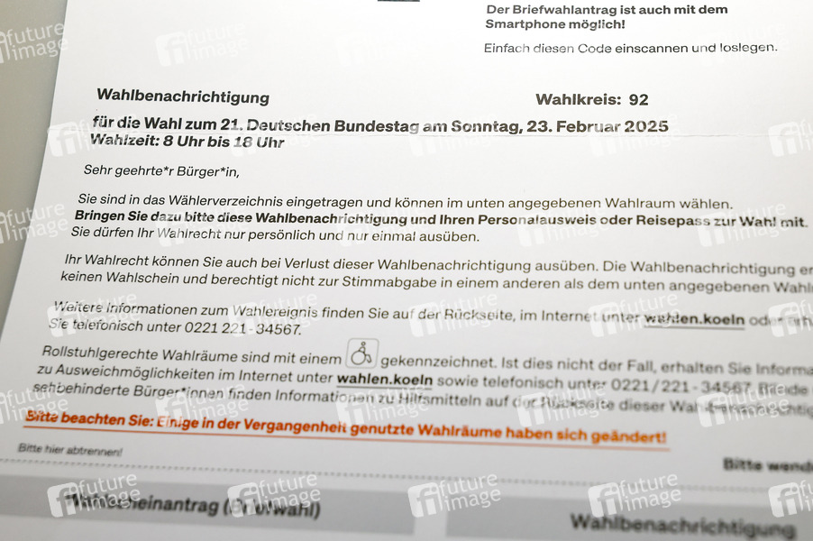 Zur Vorbereitung der anstehenden Wahl zum 21. Deutschen Bundestag am Sonntag, 23. Februar 2025, sendet die Stadt Köln Wahlbenachrichtigungen an alle wahlberechtigten Bürger Kölns aus. (Symbolfoto, Themenfoto) Köln, 25.01.2025