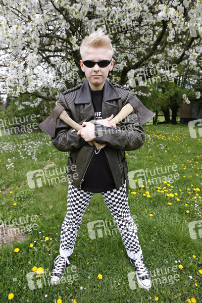 SOLsnap Cover-Model Mai 2009, Punk, Sonnenbrille, Axt, Beil