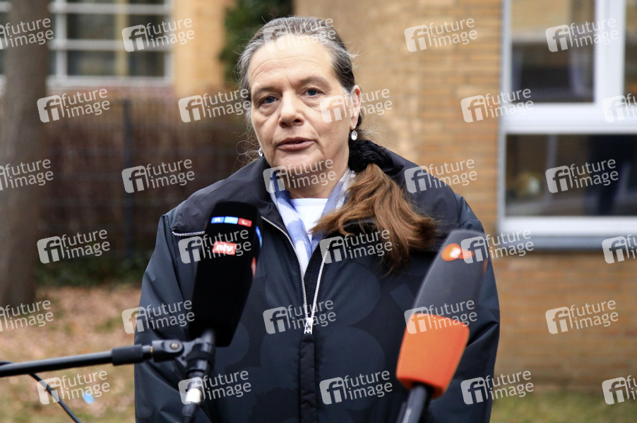 Bundeswahlleiterin Ruth Brand bei der Stimmabgabe des Bundespräsidenten zur Bundestagswahl im Wahllokal in der Erich-Kästner-Grundschule in Berlin-Zehlendorf. Berlin, 23.02.2025