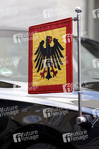 Standarte des Bundespräsidenten an der Dienstlimousine beim Besuch des Bundespräsidenten im Kunstmuseum Kolumba. Köln, 27.09.2019
