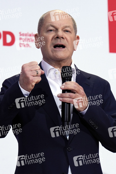 Olaf Scholz bei der Pressekonferenz der SPD nach den Gremiensitzungen zur Beratung aktueller Themen und der Nominierung des SPD-Kanzlerkandidaten für die Bundestagswahl im Atrium vom Willy-Brandt-Haus. Berlin, 25.11.2024