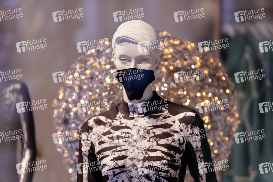Einzelhändler auf der exklusiven Kölner Mittelstraße haben aus Protest gegen die Corona-Maßnahmen des Bundes, die sie zum Lockdown zwingen, Schaufensterpuppen zu Skeletten umgestaltet und mit Gesichtsmasken versehen. Sie fordern eine gerechtere Verteilung der Corona-Hilfspakete, eine sinnvollere Corona-Politik wie etwa eine stärkere Steuerentlastungen für den Einzelhandel oder eine Mietpreisbremse für Einzelhandelsgeschäfte. (Themenbild, Symbolbild) Köln, 11.01.2021